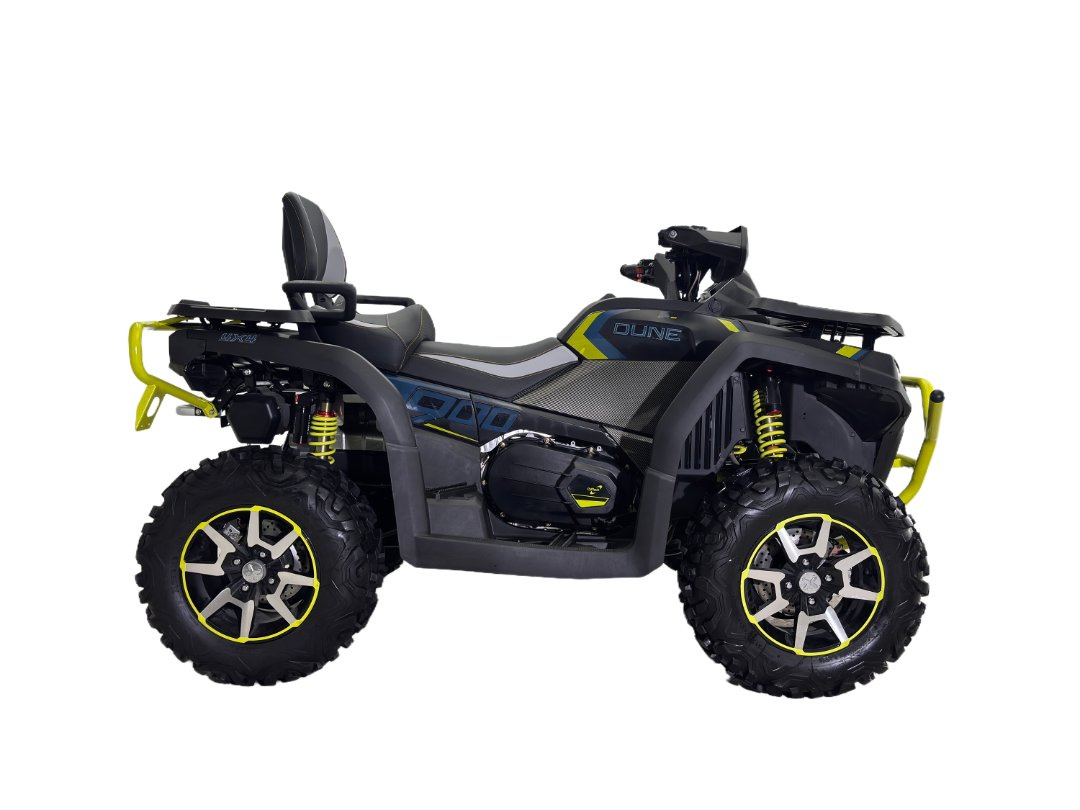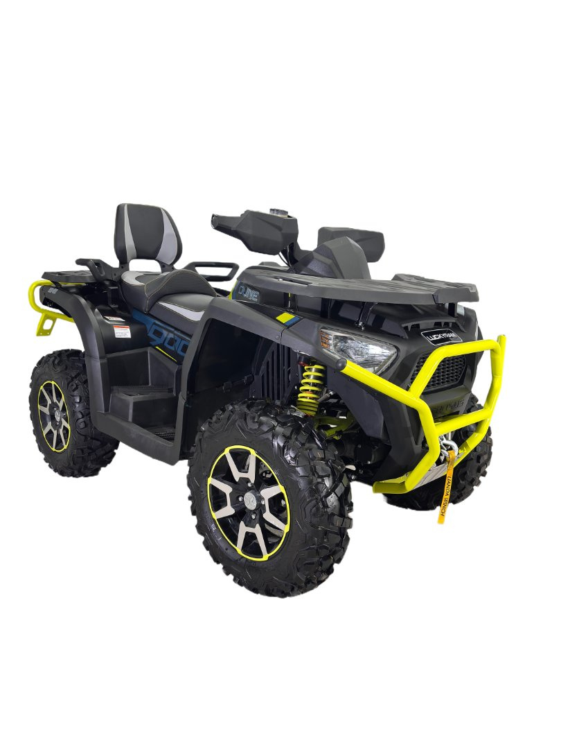 Powerful Engine – Equipped with a high-performance 900cc 4-stroke engine, delivering strong torque and acceleration for off-road adventures.Robust Suspension – Features independent or long-travel suspension systems, ensuring smooth rides over rough terrains.Durable Build – Heavy-duty steel frame and reinforced chassis provide excellent stability and impact resistance.Advanced 4WD System – Selectable 2WD/4WD modes with differential lock for superior traction in Кал, пясъчни и скалисти пътеки. Натоварване и теглене на височина-капацитет-проектиран със силни стелажи и теглеща се, способен да тегли тежки товари за работа или отдих. Удобно дизайн-ергономични седалки, отзивчиви кормилни корми и интуитивни контроли Подобряват комфорта на ездача по време на дълги разходки. Спирачките (отпред и отзад) гарантират бързи, безопасни спирки дори при високи скорости. Приложения на 900 кубика ATV: Офроуд отдих-идеални за каране на пътеки, баширане на дюни и изследване на грапави пейзажи. отдалечен или труден терен за аварийни мисии.